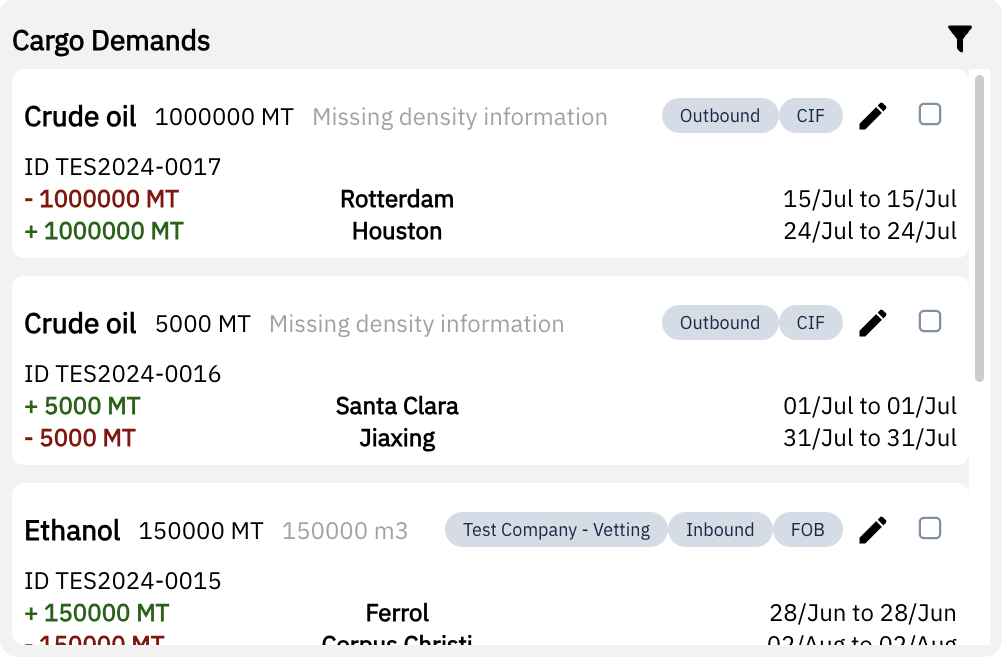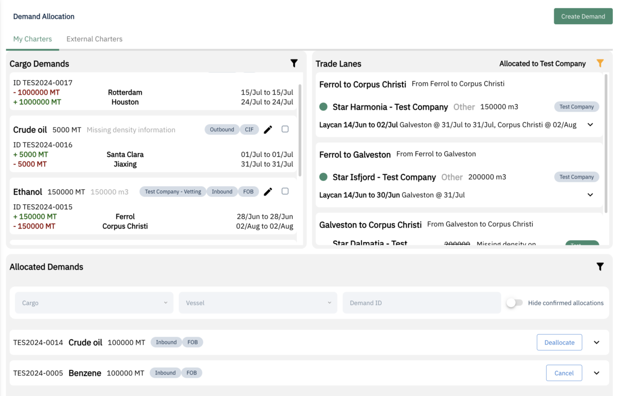 Collaborate directly with brokers, or integrate with SAP, ETRMs or any other ERP to capture orders, delivery, and demand information such as cargo, volume, laycan, loading windows, load/discharge ports, etc.