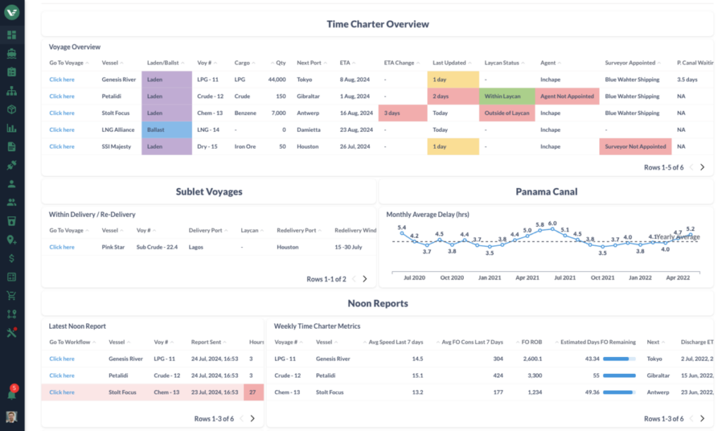Once the data is in Voyager, Voyager alerts users if a ship is outside of laycan or the ETA has been slipping for multiple dates.